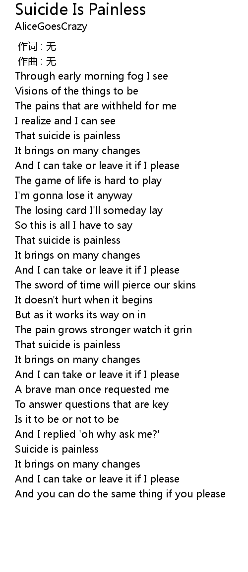 | [02:35.975] | Suicide is painless |