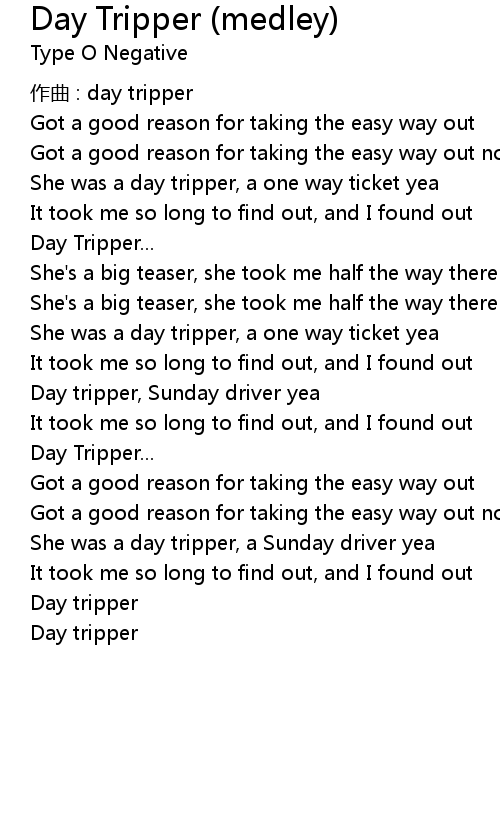 | She was a day tripper, a one way ticket yea | |