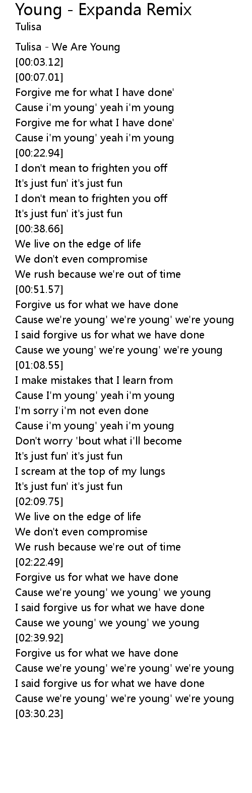 | [00:57.53] | Cause we're young' we're young' we're young |
