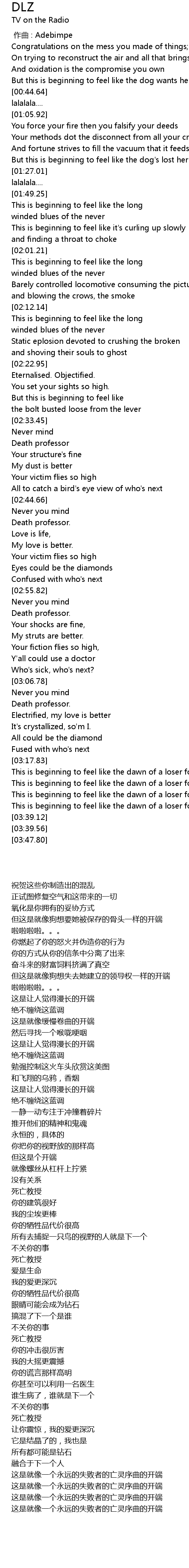 | [00:00.00] | 作曲 : Adebimpe |
