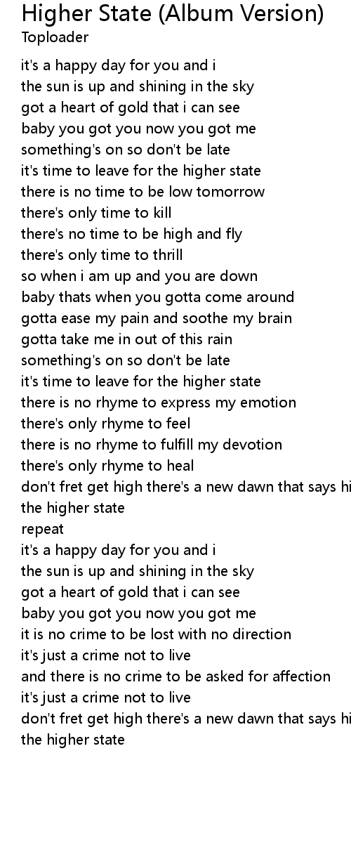 Higher State (Album Version) Lyrics