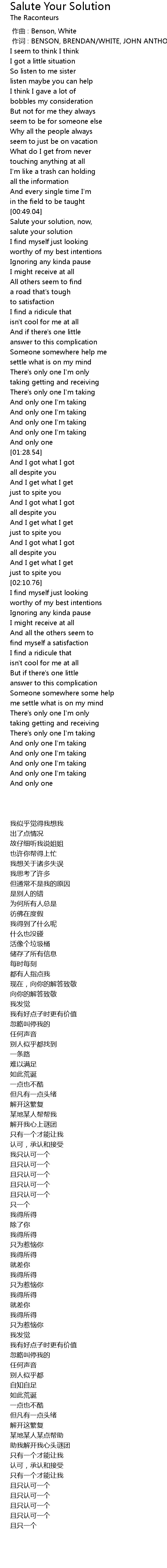 | [00:01.00] | 作词 : BENSON, BRENDAN/WHITE, JOHN ANTHONY |