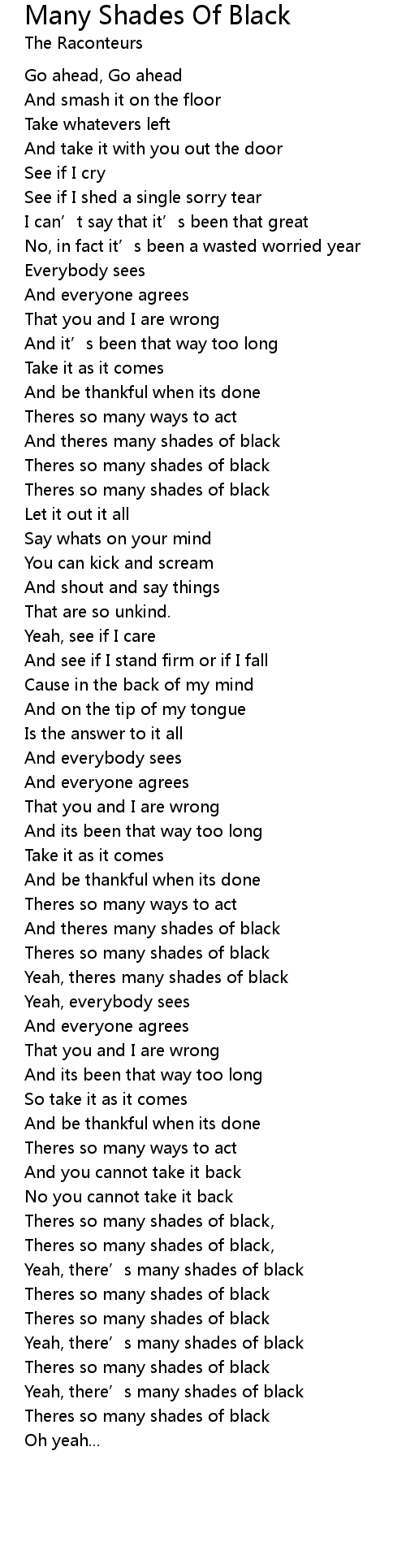 | [02:33.05] | Yeah, theres many shades of black |