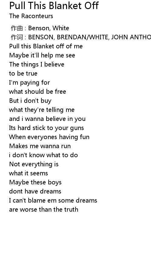 | [00:03.69] | Pull this Blanket off of me |