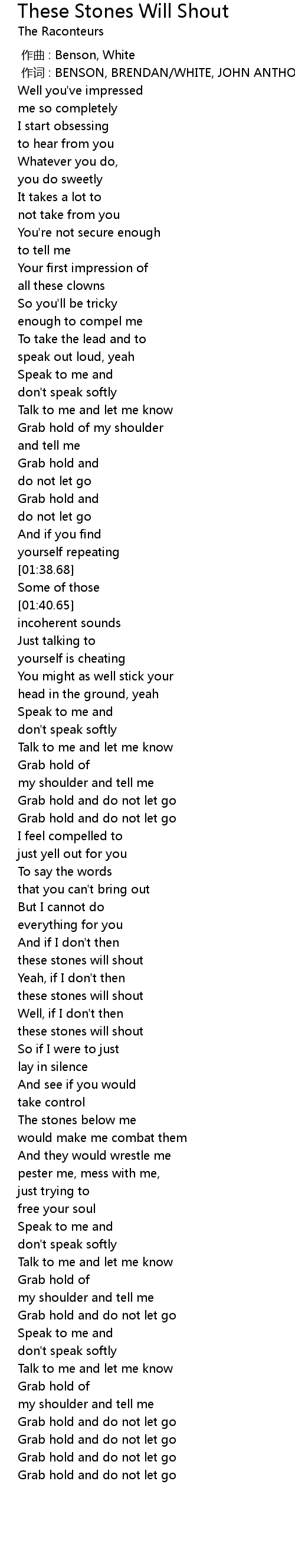 | [00:01.00] | zuò cí : BENSON, BRENDAN WHITE, JOHN ANTHONY |