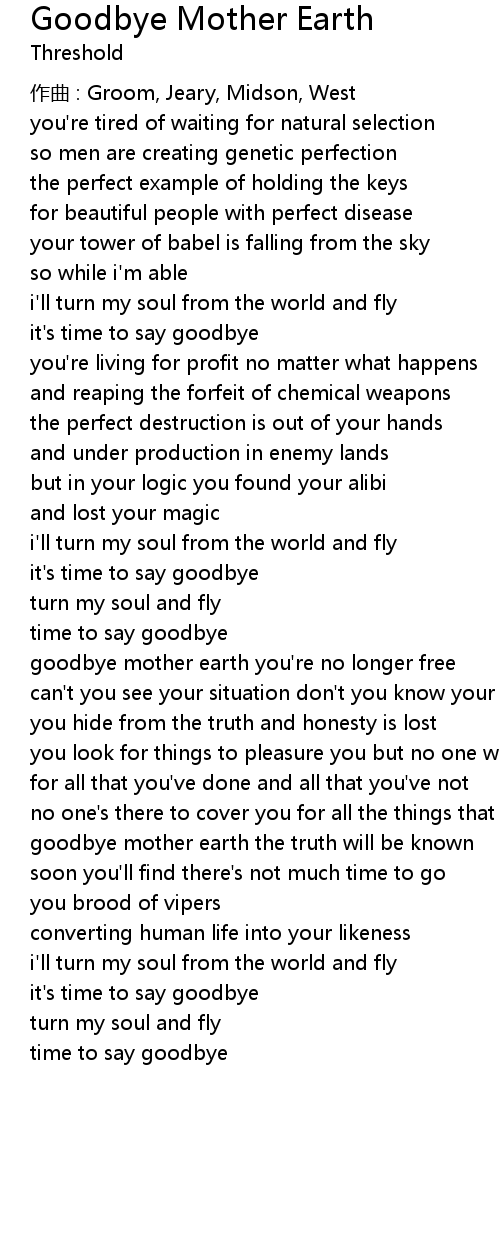 | goodbye mother earth the truth will be known | |