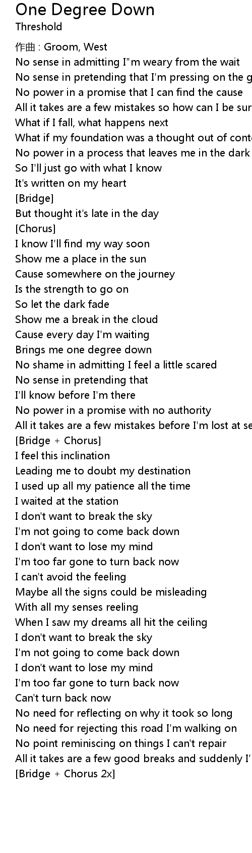 | Brings me one degree down | |
