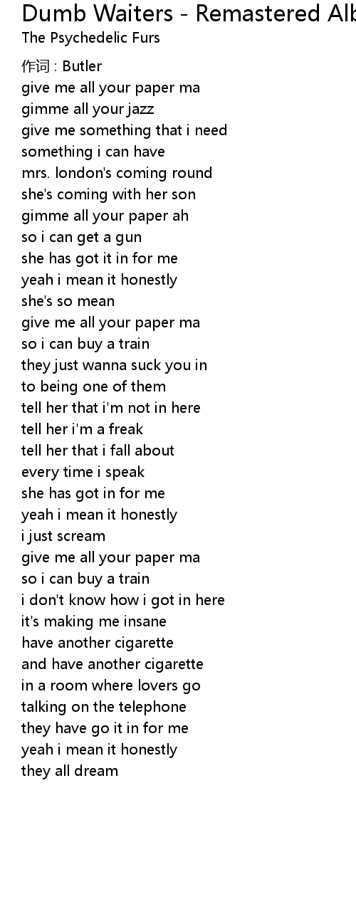 | Song | Dumb Waiters - Remastered Album Version |