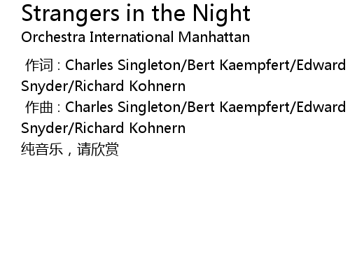 | [00:00.00] | zuo ci : Charles Singleton Bert Kaempfert Edward Abrahan Snyder Richard Kohnern |