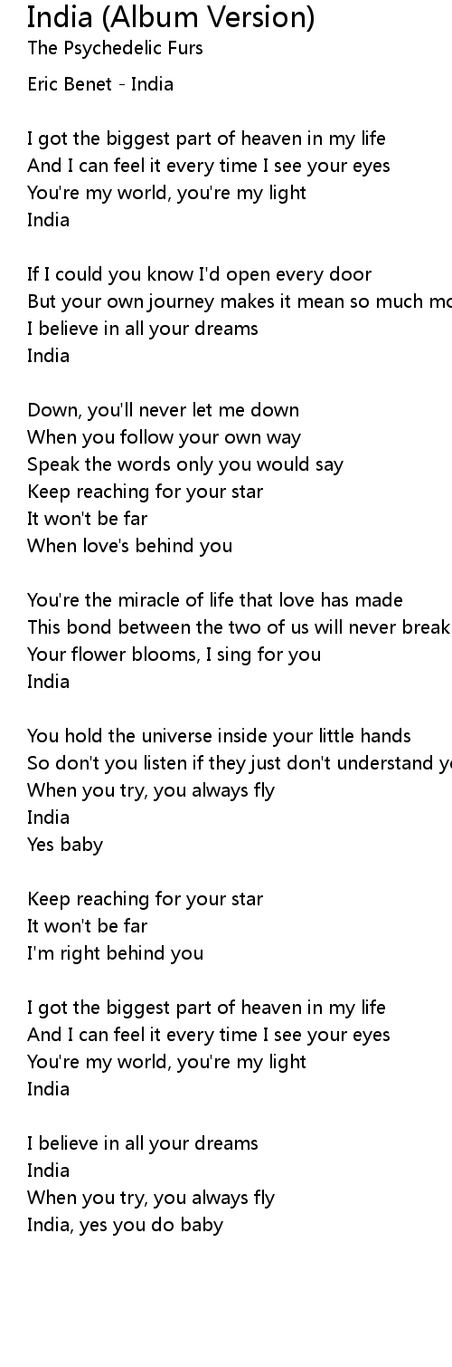 India (Album Version) Lyrics