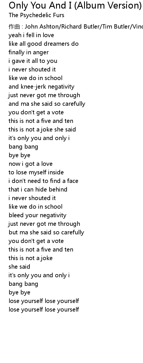 | it' s only you and only i | |