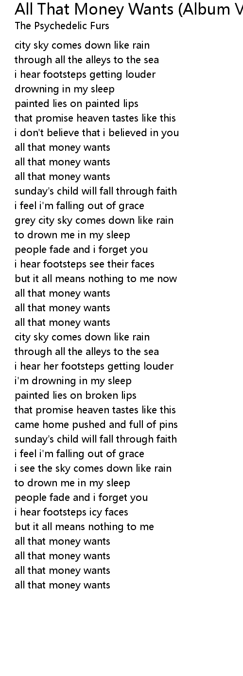 All That Money Wants (Album Version) Lyrics