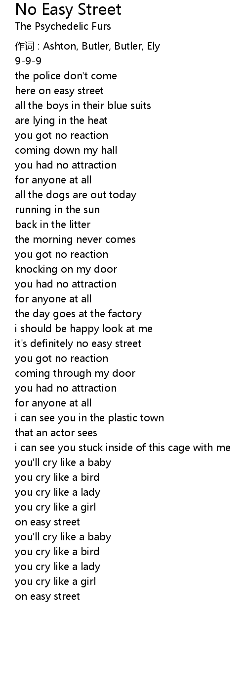 | Song | No Easy Street |
