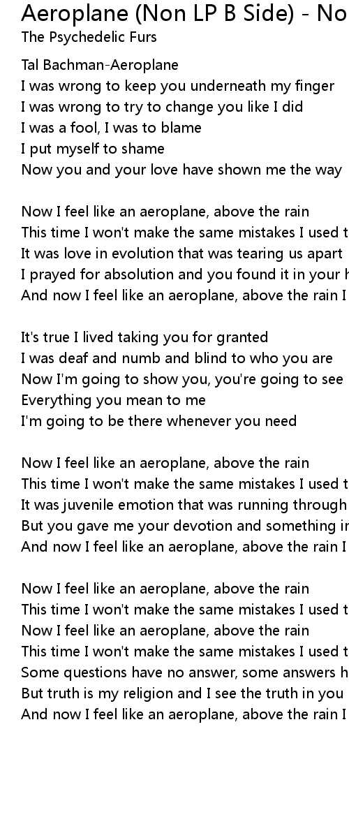 And now I feel like an aeroplane, above the rain I can fly |