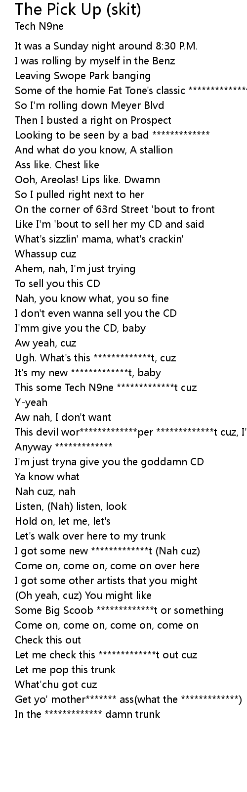 | [00:43.23] | This some Tech N9ne *************t cuz |