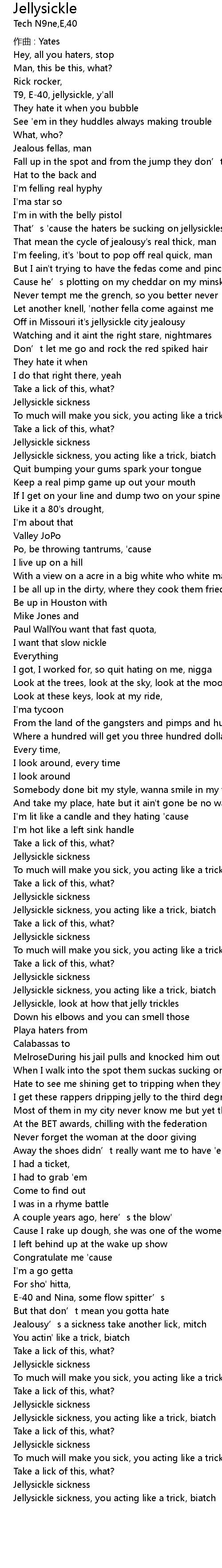 | Jellysickle sickness, you acting like a trick, biatch | |