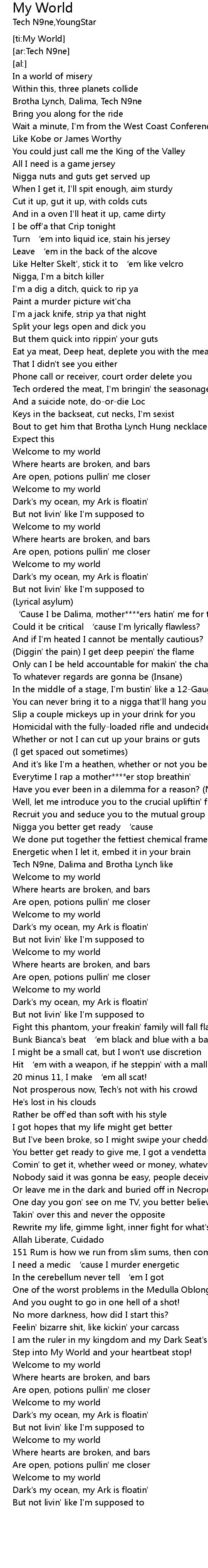 | [02:15.46] | Welcome to my world |