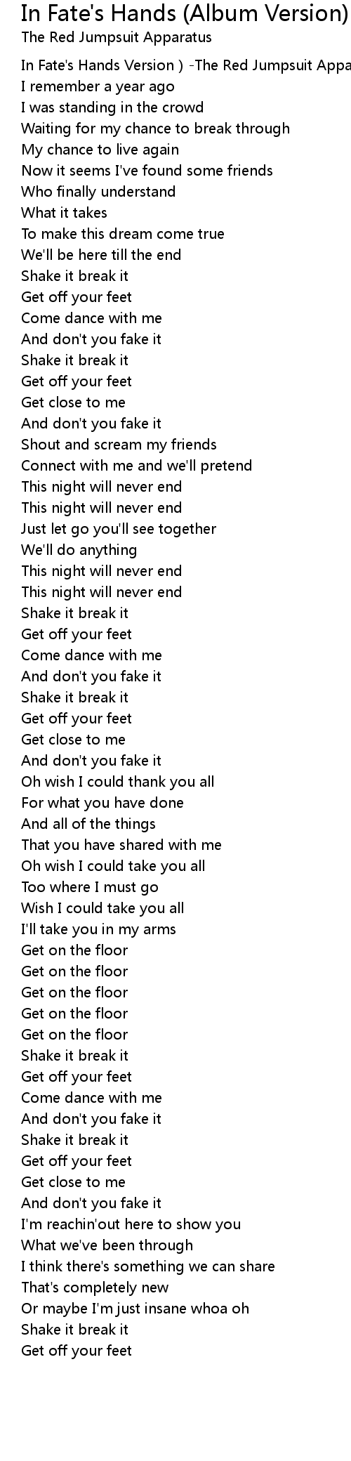 | [00:00.340] | In Fate's Hands Version)-The Red Jumpsuit Apparatus |