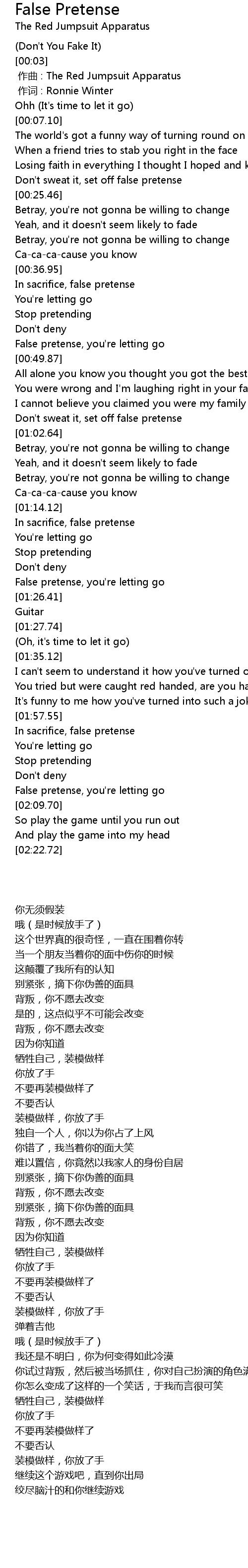 | [00:22.22] | Don' t sweat it, set off false pretense |