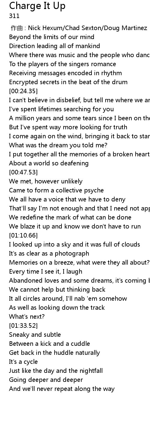 | [00:00.00] | zuò qǔ : Nick Hexum Chad Sexton Doug Martinez |