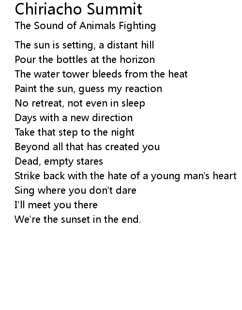 | Artist | The Sound of Animals Fighting |