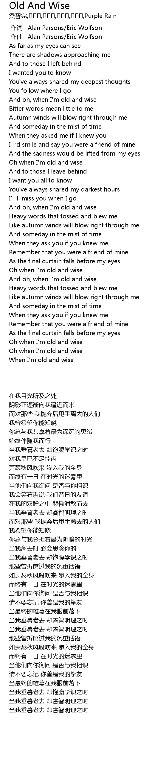 | Song | Old And Wise |