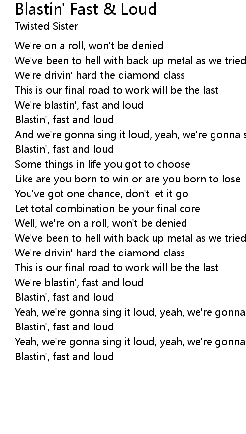 We're blastin', fast and loud |