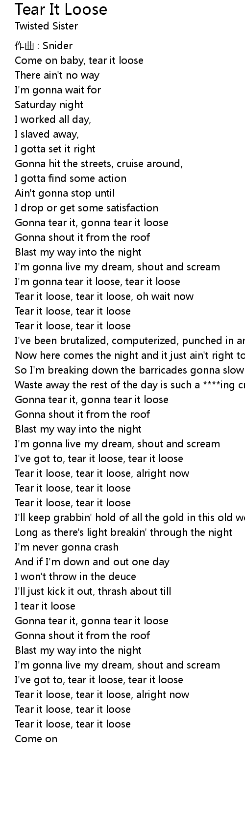 | Tear it loose, tear it loose, oh wait now | |