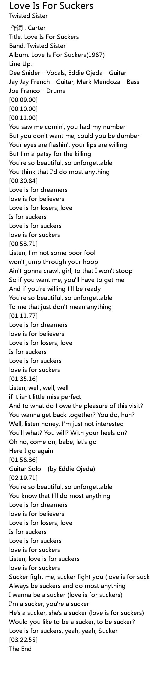 | [03:11.02] | I wanna be a sucker (love is for suckers) |