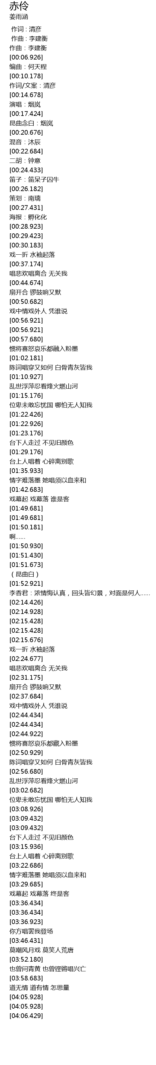 | [01:42.429] | 情字难落墨 她唱须以血来和 |
