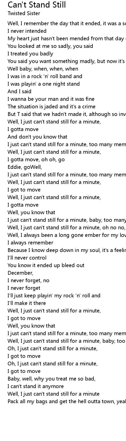 Well, I just can't stand still for a minute, oh no no, too many memories ended |