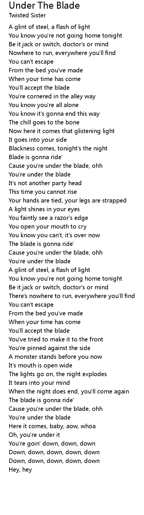 Under The Blade Lyrics