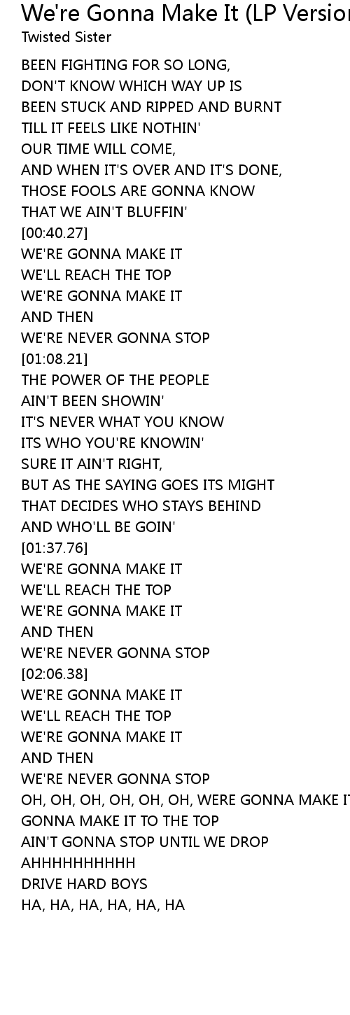 WE'RE GONNA MAKE IT |