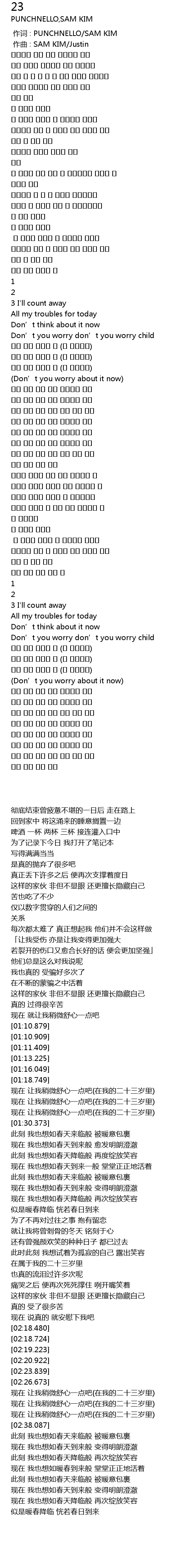 | [02:35.403] | 이젠 좀만 편하게 해 (내 스물셋엔) |