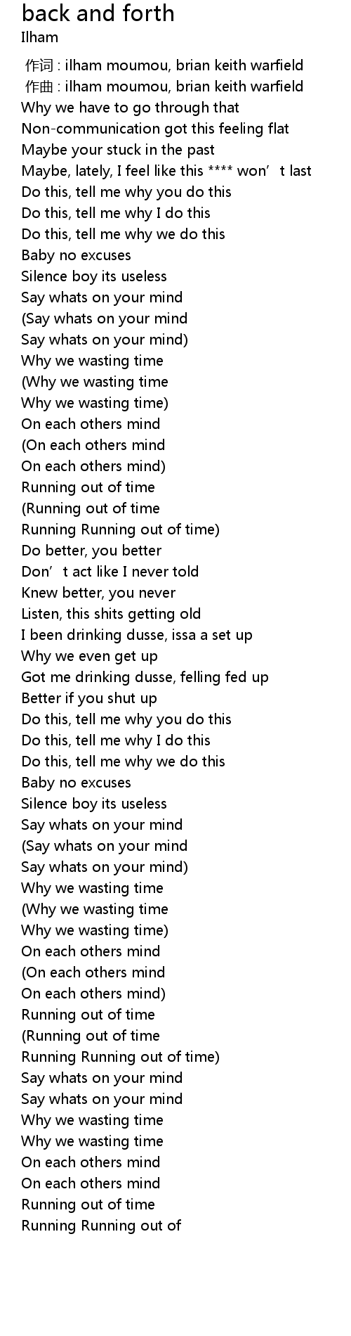 | [00:00.00] | 作词 : ilham moumou, brian keith warfield |