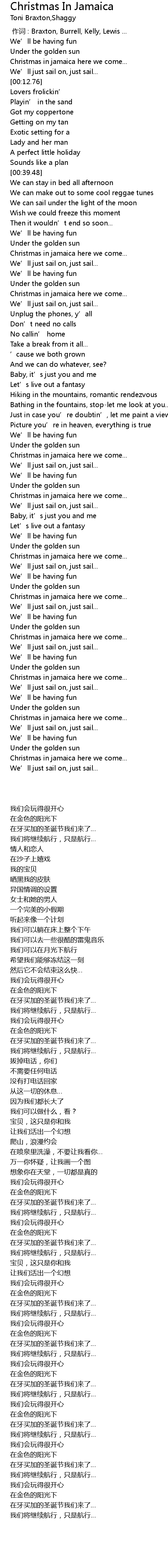 | [03:55.39] | Christmas in jamaica here we come... |