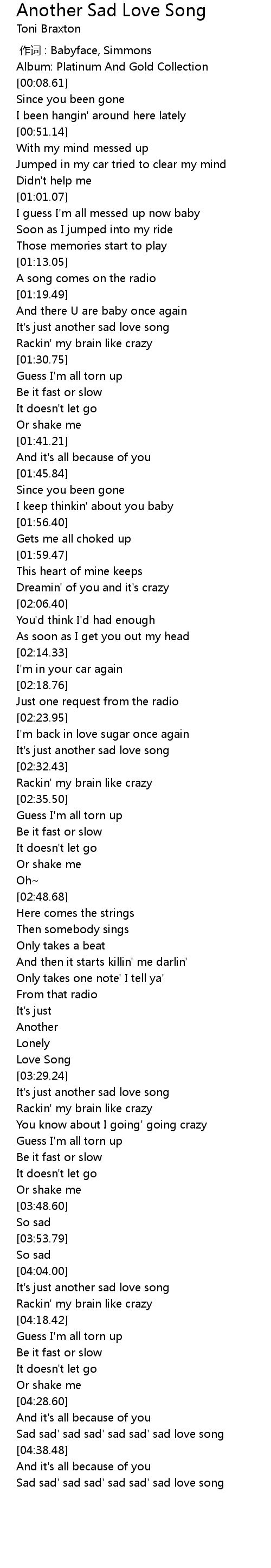 | [03:31.81] | It's just another sad love song |