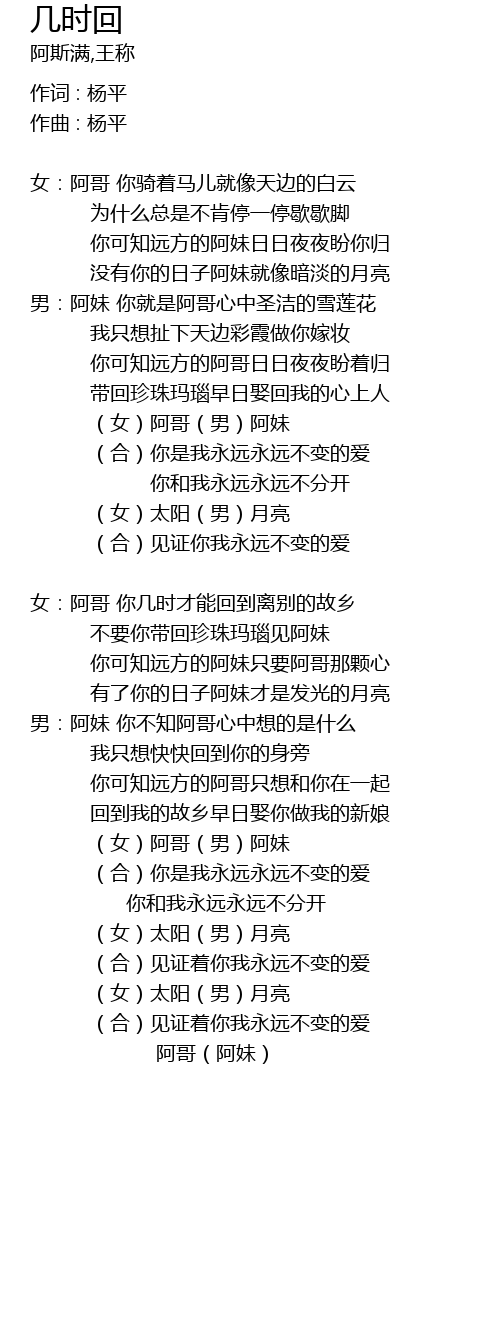 | 你可知远方的阿哥日日夜夜盼着归 | |
