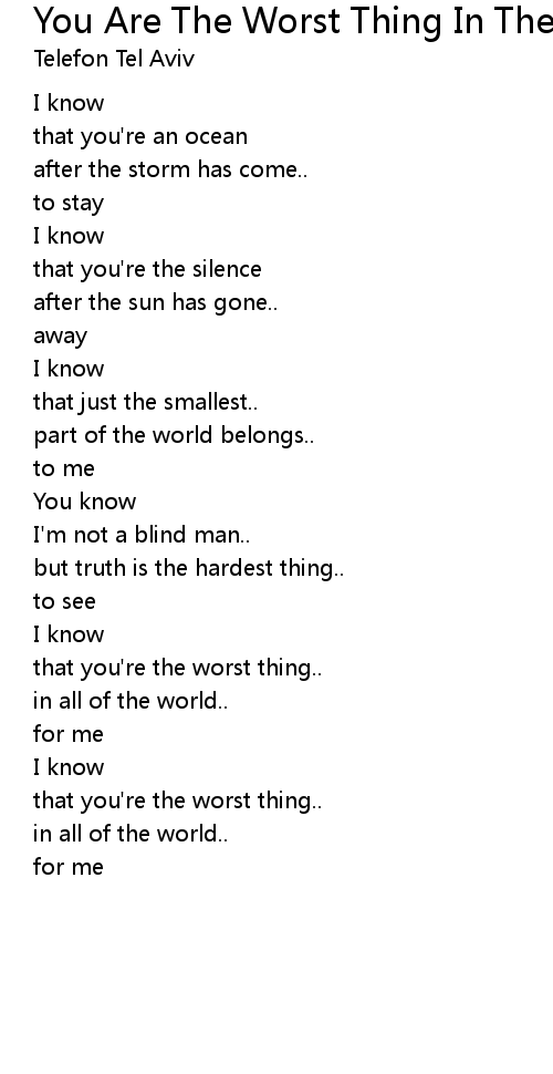 | Song | You Are The Worst Thing In The World |