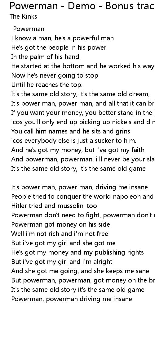 But powerman, powerman, got money on the brain |
