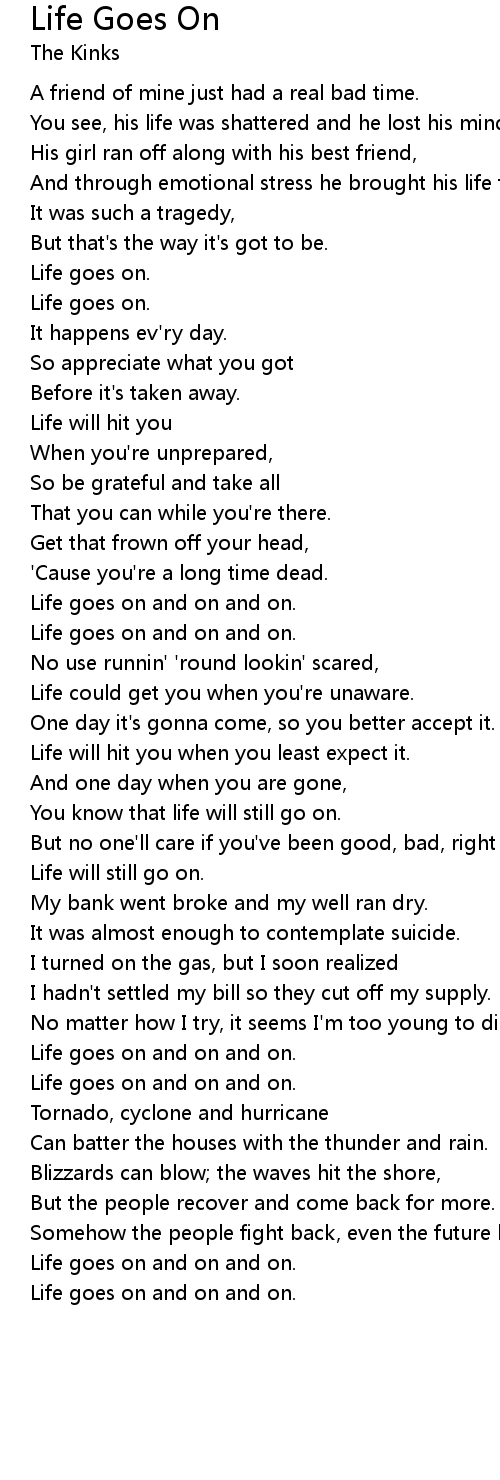 Life goes on and on and on. |