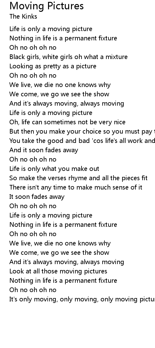 It's only moving, only moving, only moving pictures |