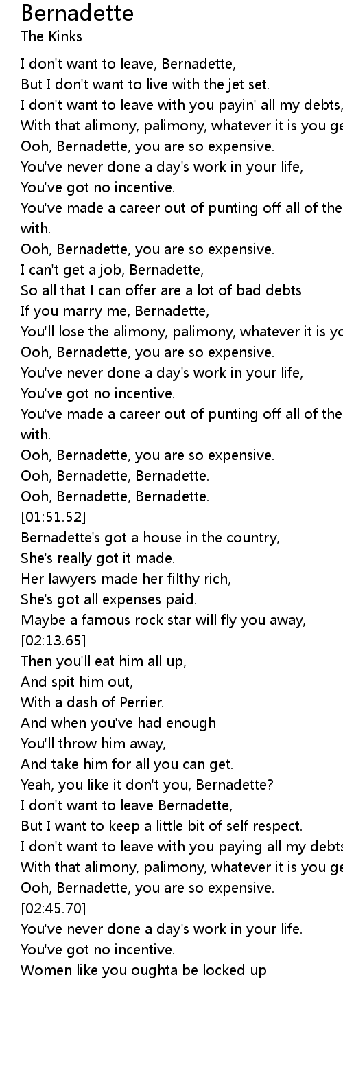 I don't want to leave Bernadette, |