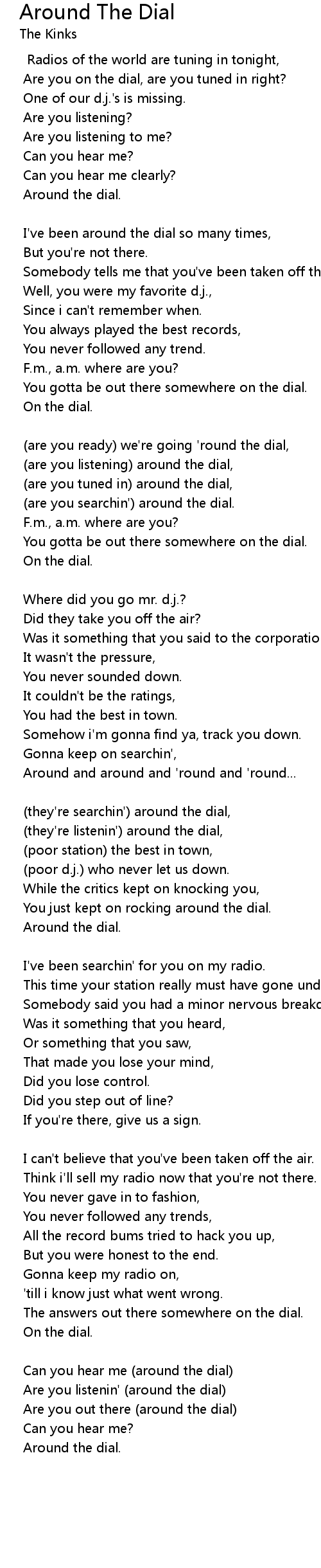 (are you listening) around the dial, |