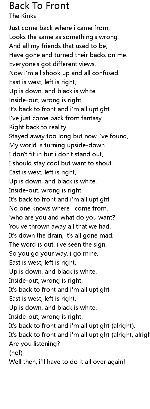 It's back to front and i'm all uptight (alright, alright, alright, alright). |