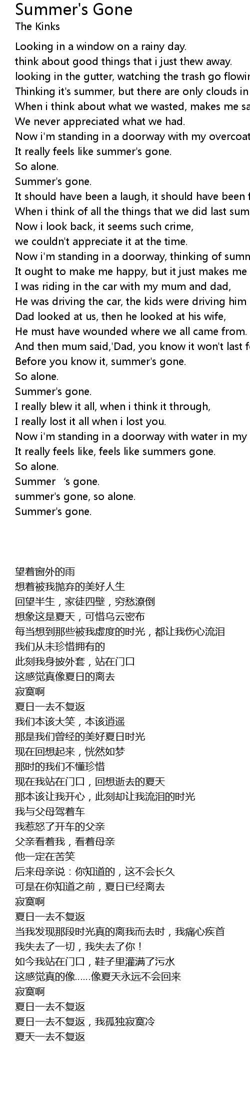 | Song | Summer's Gone |