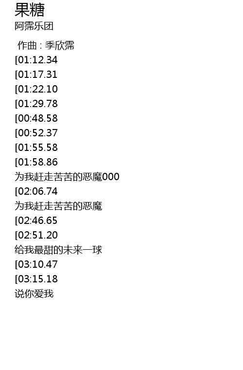 | [00:57.91][01:55.58][02:11.56][02:43.50][02:59.33] | 一球果糖是你的温柔 |
