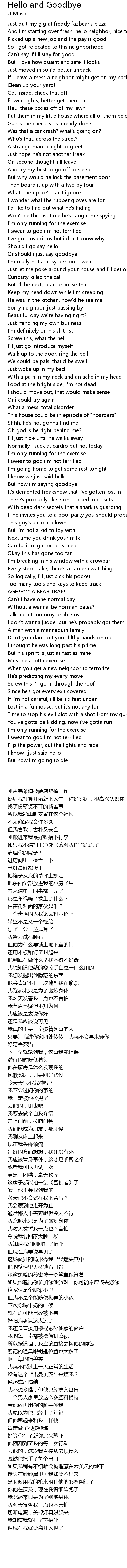 And i'm starting over fresh, hello neighbor, nice to meet ya |