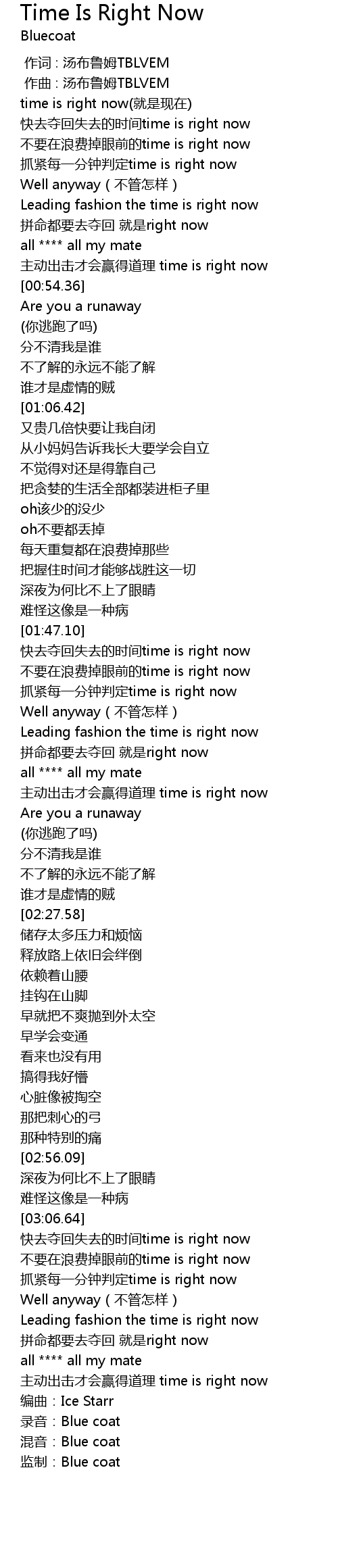 | [03:08.39] | 快去夺回失去的时间time is right now |