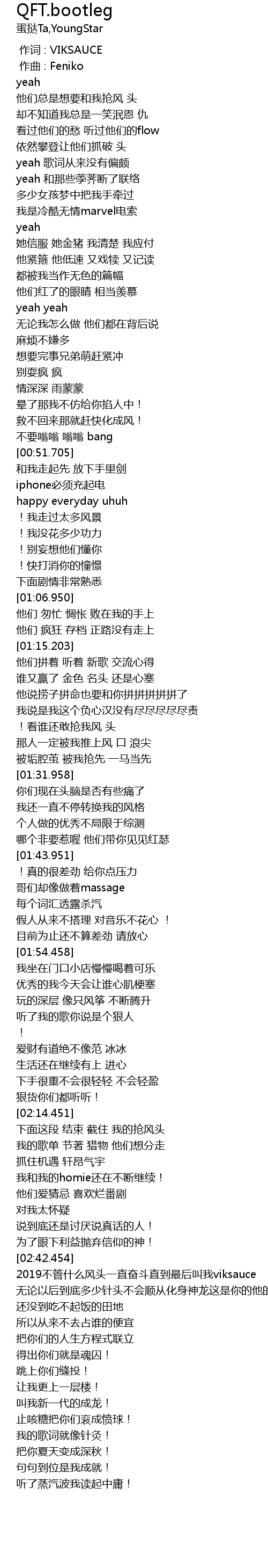 | [02:42.953] | 2019 bu guan shen me feng tou yi zhi fen dou zhi dao zui hou jiao wo viksauce |